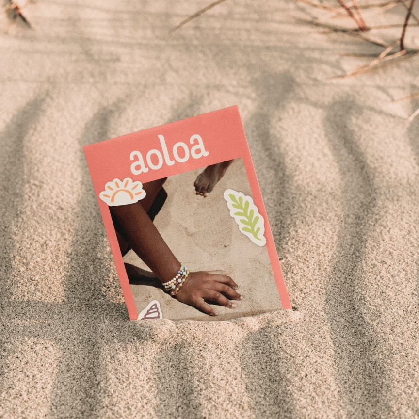 The Aoloa wordmark began as sketch explorations inspired by island life and childlike forms. Digital refinement led to the development of a final logo that balances the essence of childhood with an organic structure.